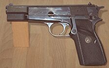 THE handgun that Browning is most associated with, it has been (and is) the standard handgun for dozens of militaries from countries all over the world, such as Belgium, the Netherlands, Great Brittain, Canada, Denmark, etc.. It is a highly reliable gun, and is only now being replaced because most of the guns are simply used up after decades of service. Hundreds of thousands have been and are being made, and it is very common. Recently a version in .40 S&W has been introduced.