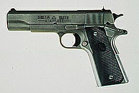 A large caliber pistol based upon the Colt M1911A1, but slightly modified to fire the 10 mm round. Just like the M1911A1 it is available in several finishes, and a large amount of parts are interchangable between the two guns. It uses 8 round magazines, altough 9 round magazines are available.