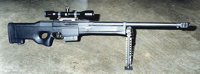 The Barrett model 98 was introduced at the `98 Shot Show. The weapon came in .338 Lapua Magnum and was gas operated, unlike Barretts earlier semi-automatic rifles in .50 caliber which all operated with a Long Recoil action. Although apparently Barrett wanted to make the rifle both as a Semi-Automatic and as a Bolt-Action weapon, serial production is only of the semi-automatic rifle.